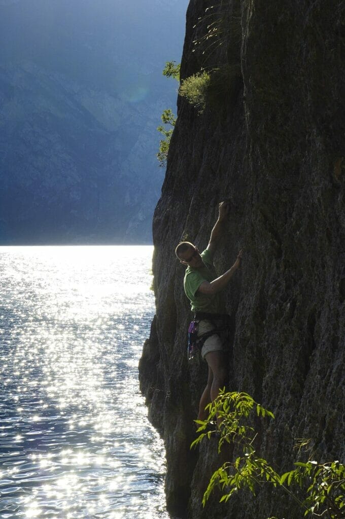 Arrampicare a picco sul lago in una delle falesie storiche dell’Alto Garda
